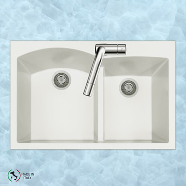 Our cutting-edge Quartztone sinks are three times harder than natural granite stone sinks. Each quartz composite sink is crafted out of 80% quartz fused to 20% high-grade acrylic, resulting in an exceptionally durable and 100% sealed, pore-free surface that is hygienic and highly resistant to cracks, scratches, and stains. We also integrate silver ions with antimicrobial properties that help to reduce the spread of germs. Rugged, colorfast, and silky smooth to the touch, our Quartztone sinks deliver everything you love about natural granite with plenty of exciting upgrades.